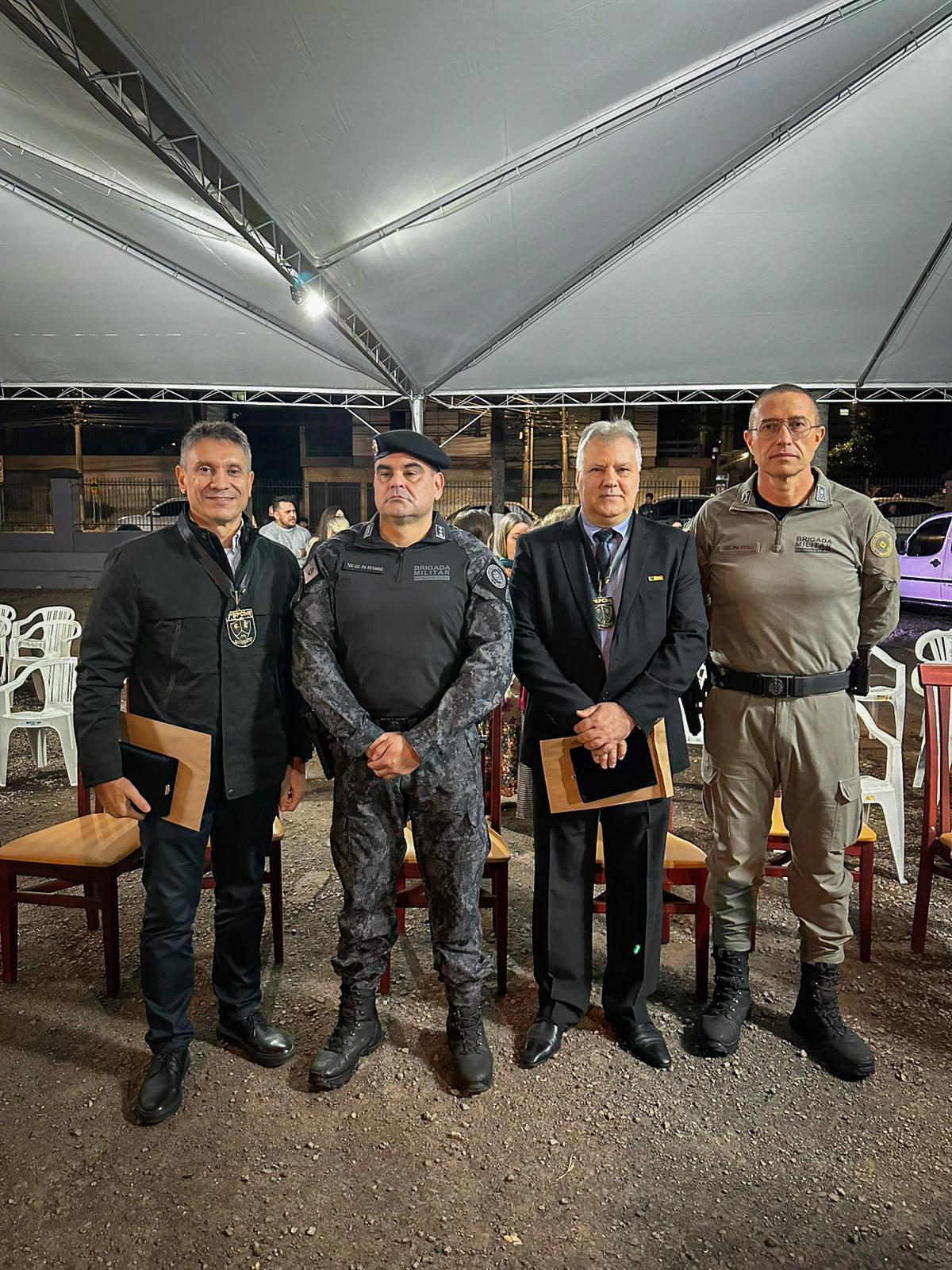Durante a cerimônia comemorativa, diversas autoridades foram homenageadas com a medalha alusiva aos 20 anos do batalhão, entre elas o presidente da CDL, Evandro Pereira da Silveira, e o presidente do Consepro, Wilson Ceolin.
