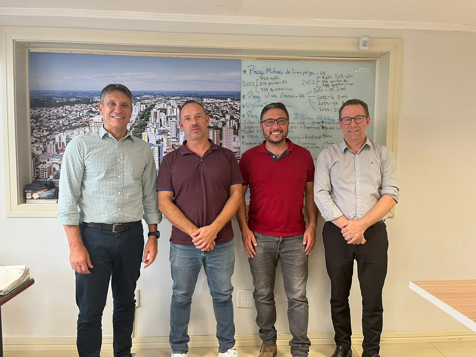 O presidente da CDL Passo Fundo, Evandro Pereira da Silveira, e o secretário de Transporte e Serviços Gerais (STSG) de Passo Fundo, Alexandre Mello, se reuniram para estreitar parcerias em prol do desenvolvimento da nossa cidade. A reunião, que aconteceu na STSG nesta quarta-feira (27), contou com a presença do executivo da Entidade, Onis Casagrande, e do engenheiro eletricista da secretaria, Edson de Araújo.