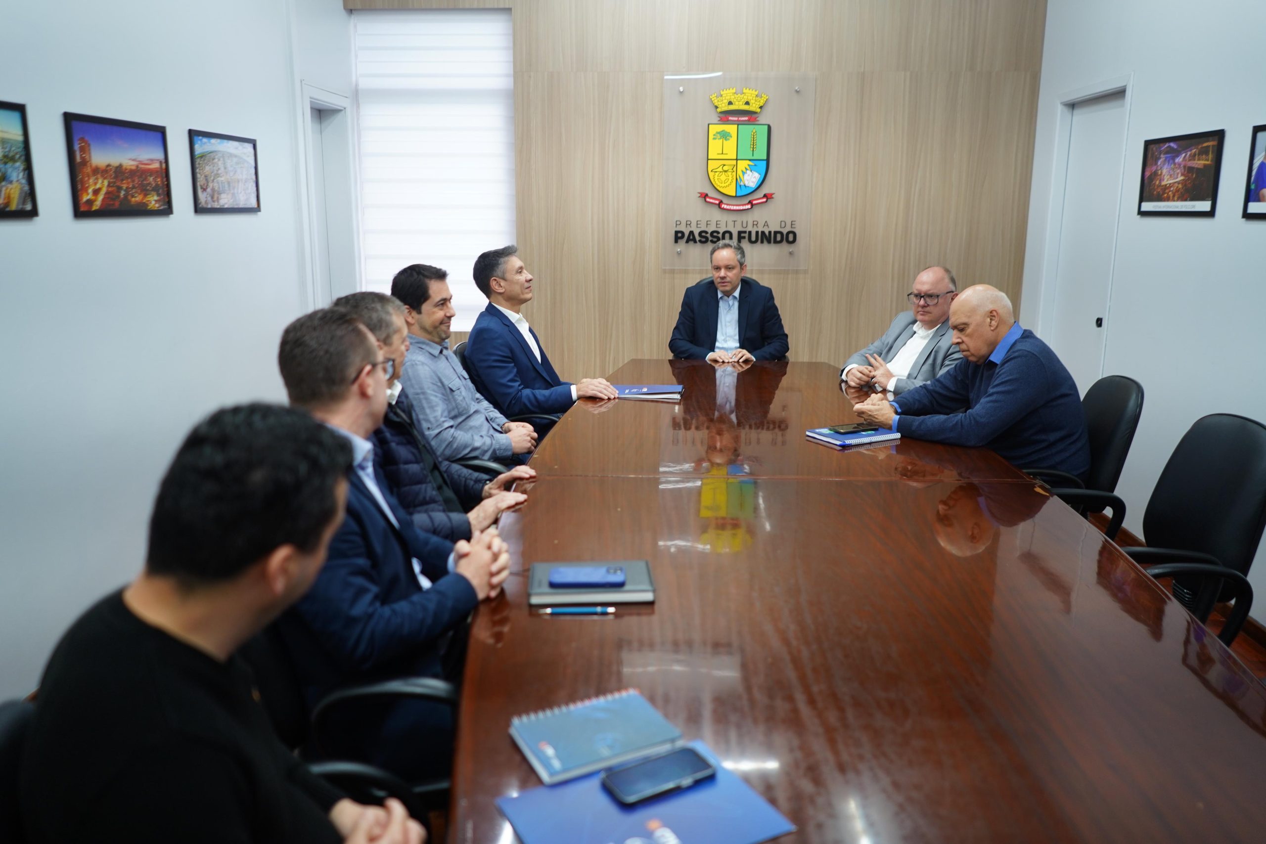 Nesta quarta-feira (9), a CDL Passo Fundo, representada pelo presidente Evandro Pereira da Silveira, os diretores Fernando De Carli e Sergio Giacomini, Onis Casagrande, e Daniel dos Santos, reuniu-se com o prefeito Pedro Almeida. Também participaram do encontro o secretário de planejamento econômico, Diorges Oliveira, e o procurador geral do município, Adolfo de Freitas.