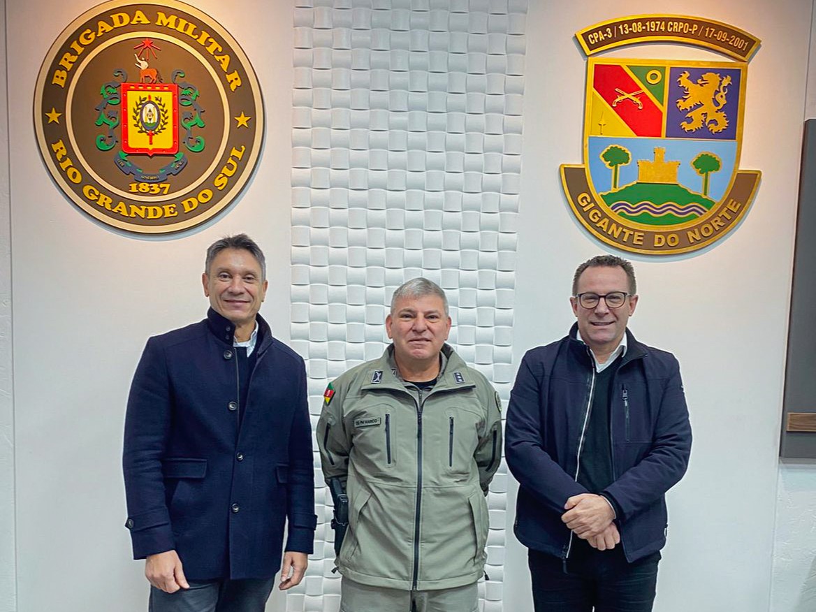 O presidente da CDL Passo Fundo, Evandro Pereira da Silveira, acompanhado do diretor executivo Onis Casagrande, realizou uma visita institucional ao Comandante do CRPO Planalto, Cel QOEM Marco Antônio dos Santos Morais.